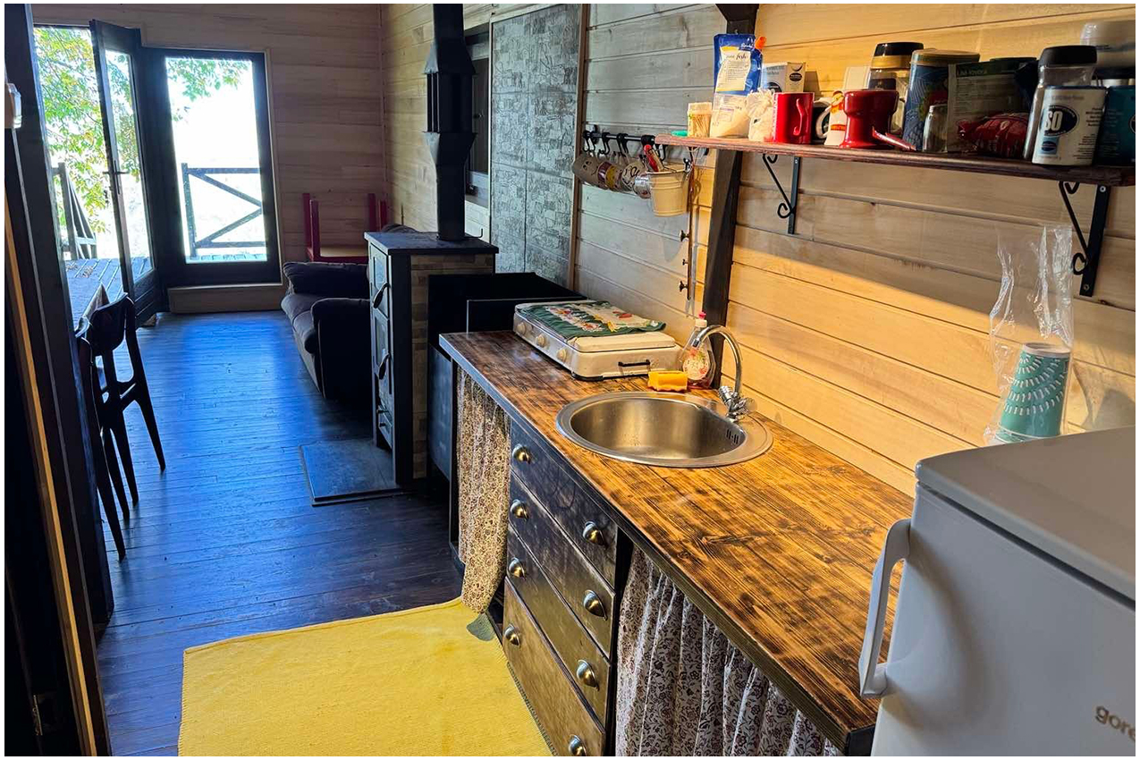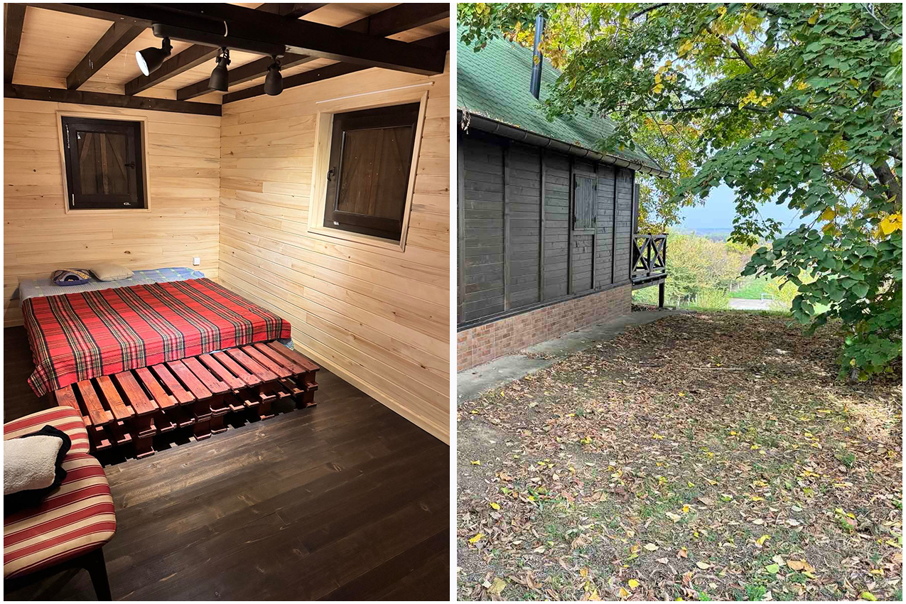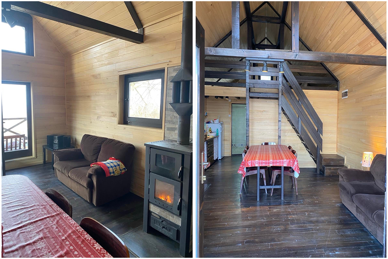Naravno tu je peć na drva,prenosivi klima uredja i prodaje se kompletno namestena.